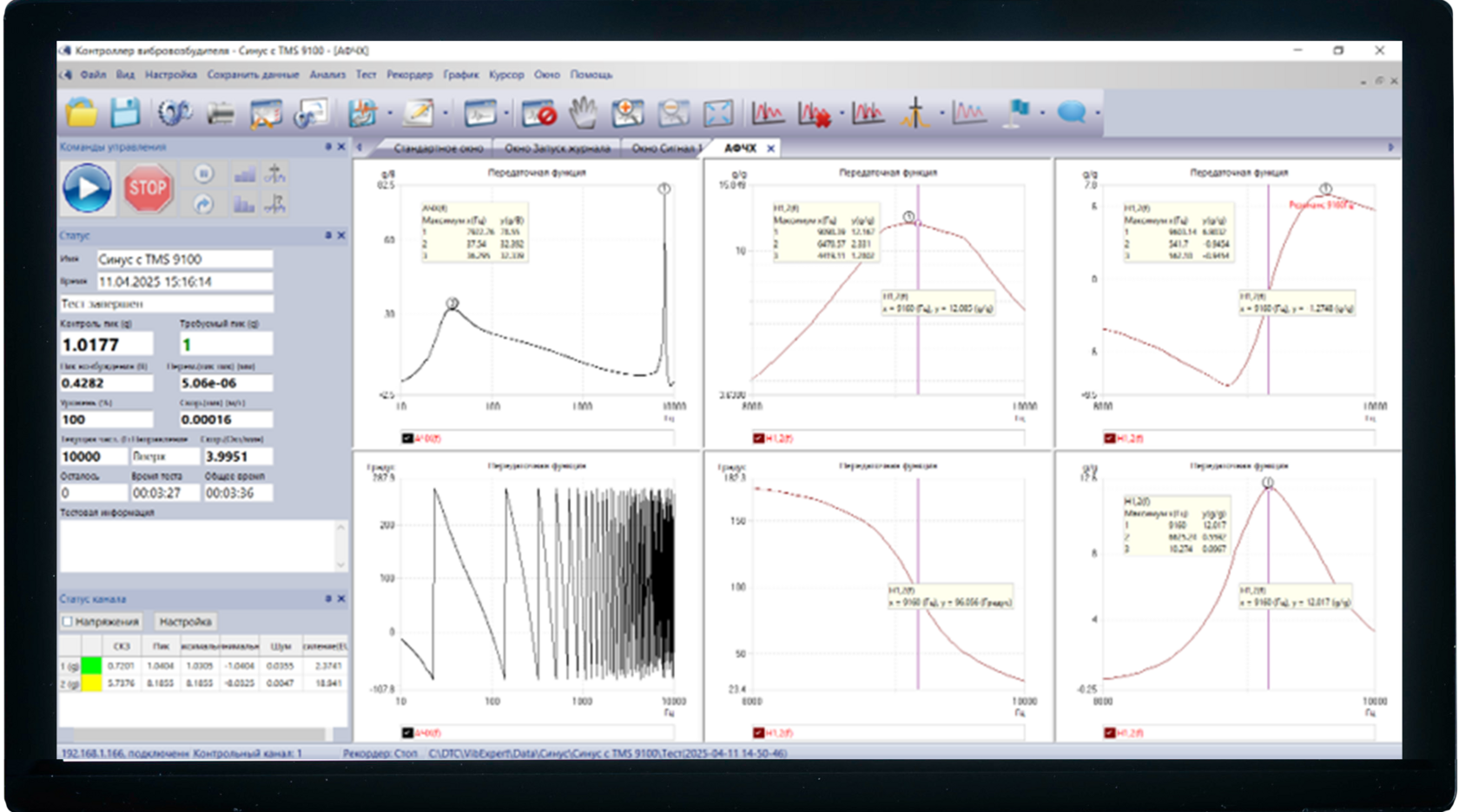1.Все основные режимы вибрационных испытаний ( доп. опции):